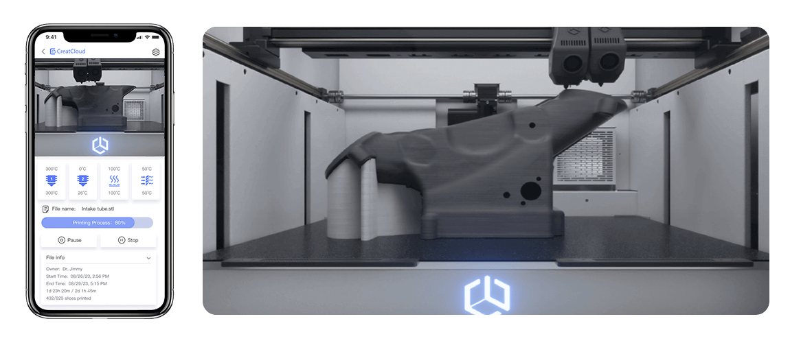 With a build volume of over 1050 × 1050 × 1050 mm, the D1000 Pro HS produces full-scale functional prototypes, molds, tools, and end-use parts directly in-house. The 80 °C chamber, filament drying system, and AI-assisted calibration ensure dimensional accuracy even with high-performance engineering materials. Materials such as UltraPA-CF achieve up to 80 MPa strength and 150 °C heat resistance — ideal for demanding industrial applications and validation under real-world conditions.