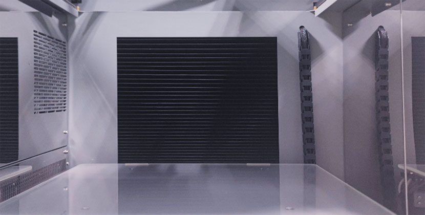 The ultra-flat platform made of aerospace-grade aluminum with a polymer-coated printing surface remains level despite the extreme chamber environment (0.05 mm / 0.1 mm). No manual or automatic leveling is required.