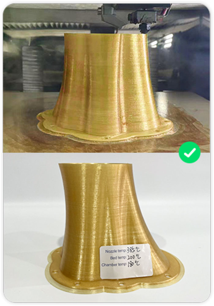 | Filamentkompatibilität | Technische Kunststoffe: PLA, ABS, ASA, PC, Nylon, PETG, PVDF, Carbon Fiber Hochtemperaturmaterialien: PET-CF, PET-GF, UltraPA, UltraPA-GF, UltraPA-CF, PPS UUltrahochleistungsmaterialien: PEI (ULTEM™ Full line), PEEK, PEEK-CF, PEEK-GF, PEKK etc. |