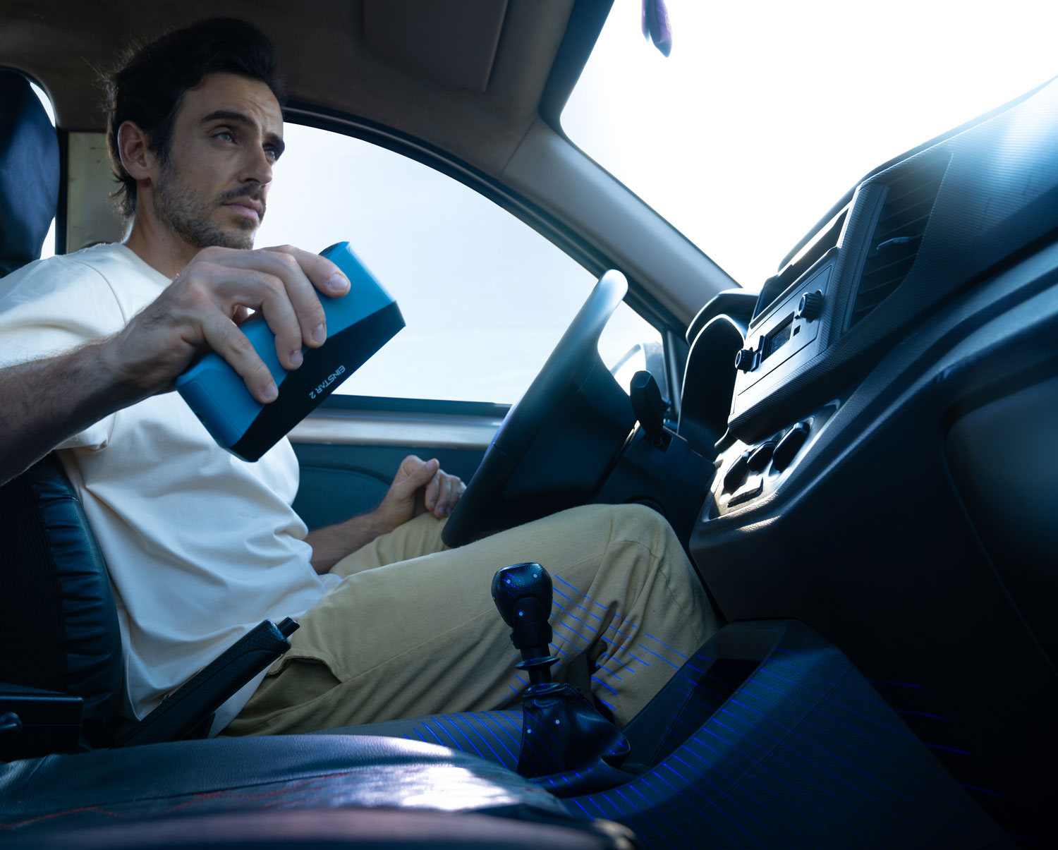 The EINSTAR 2 combines blue laser lines, IR VCSEL, and wireless connectivity in an ultra-lightweight, palm-sized device. With up to 90 fps, 17 parallel laser lines, full-color texture capture, and an integrated battery providing up to 3 hours of scanning, it sets new standards for mobile, versatile 3D scanning – indoors, outdoors, and anywhere in between.