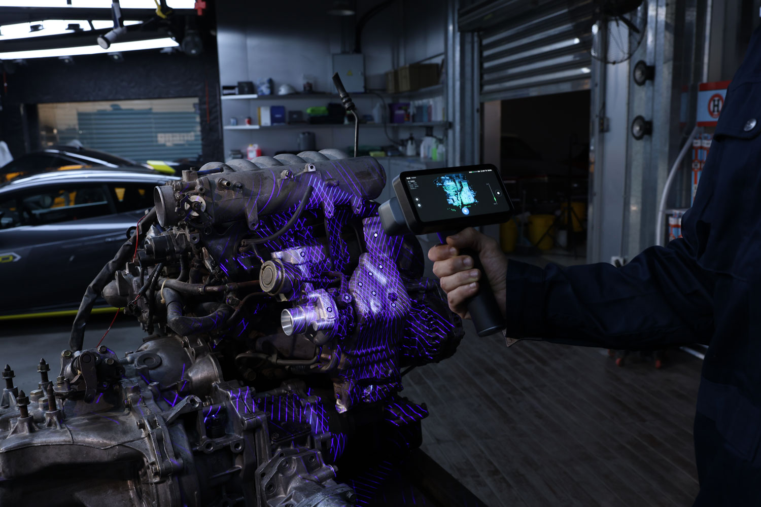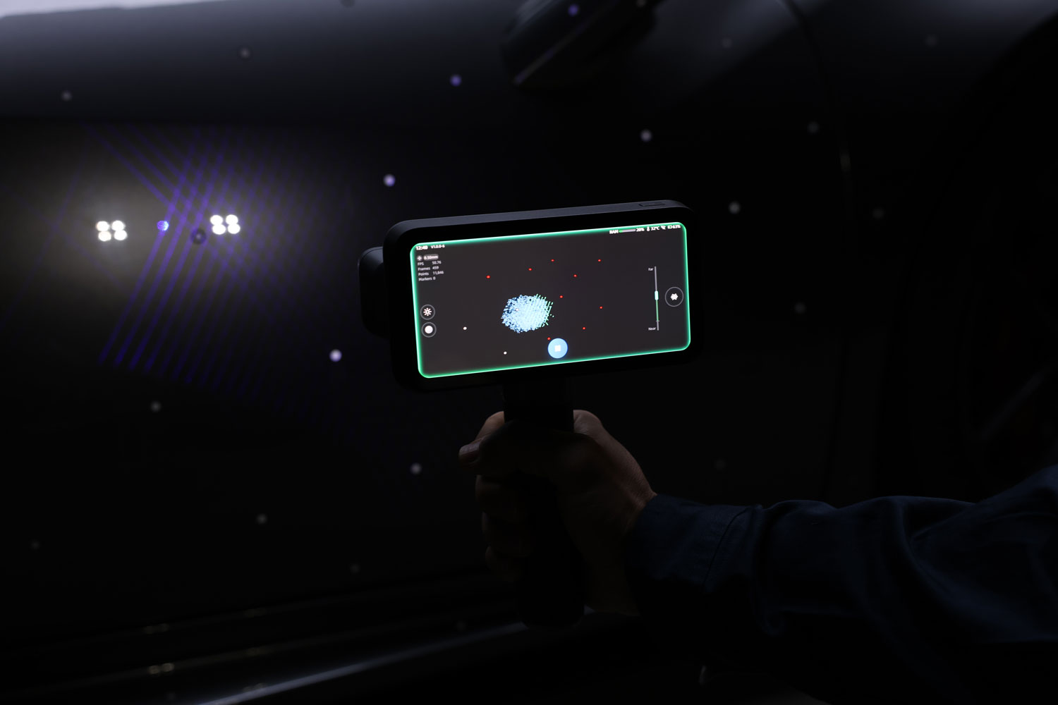 With two specially calibrated camera groups and projectors, the EinScan Rigil adapts seamlessly to different light sources – laser and infrared. This ensures precise, stable results even under strong ambient lighting, with a volumetric accuracy of 0.04 + 0.06 mm/m. Three flexible operating modes – standalone, wireless, and Wi-Fi PC mode – provide maximum freedom and performance for a wide range of scanning requirements. In this way, the EinScan Rigil combines top-tier accuracy, adaptability, and efficiency in a single system.