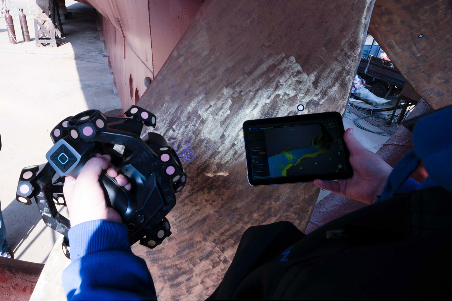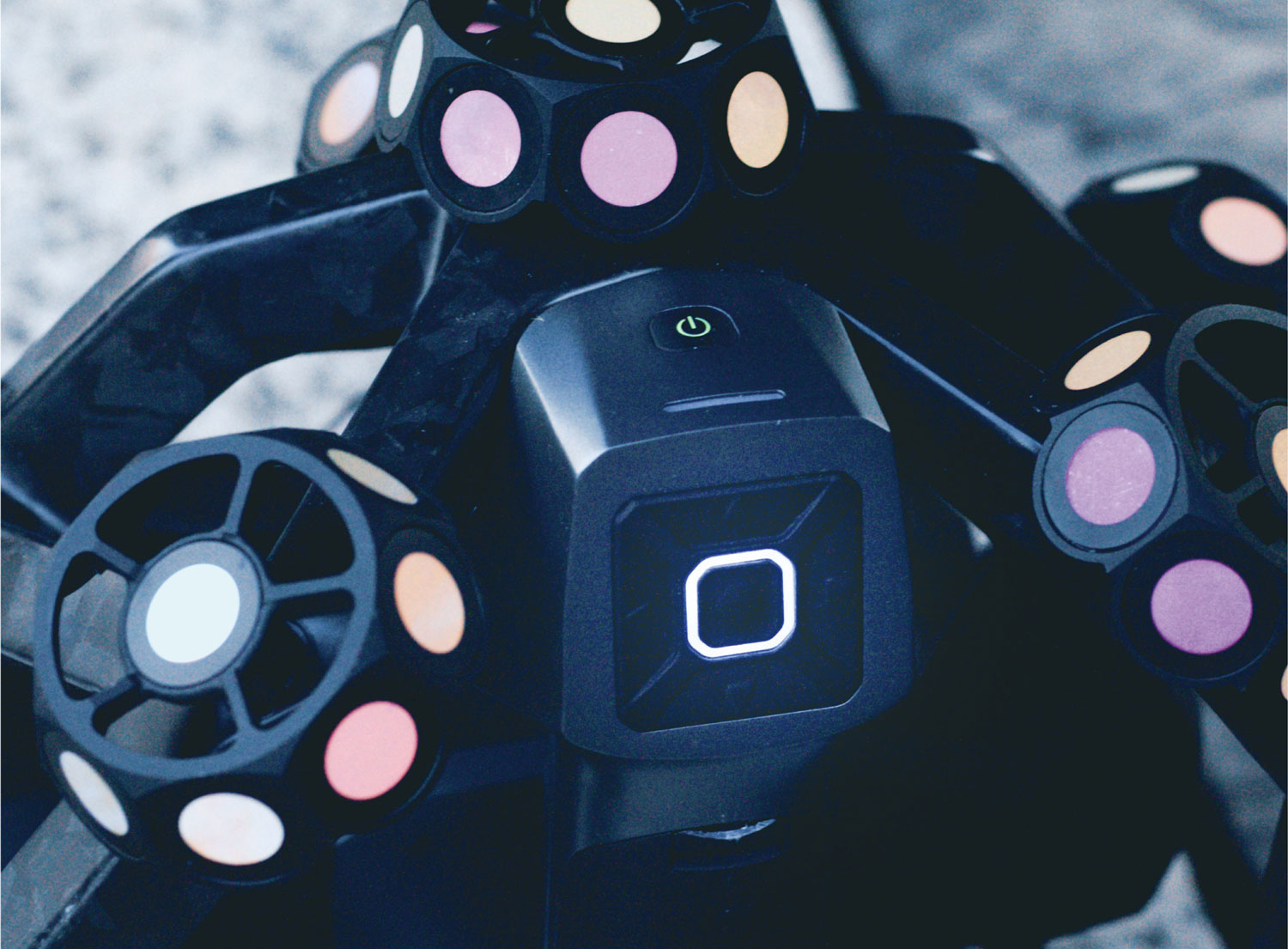 Depending on the positioning method, both the scanner and the objects being scanned can be moved during the scanning process. The accuracy in Fixed Scan Mode is 0.04 mm. With marker alignment in Handheld Mode, the volumetric accuracy is up to 0.045 mm + 0.3 mm/m.